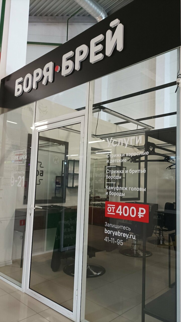Салон находится в Автозаводском районе города по адресу: Самарская область, городской округ Тольятти, Спортивная улица, 4В. Работает ежедневно с 09:00 до 21:00. Для удобства клиентов доступна предварительная запись по телефону +7 (8482) 41-11-95. Более подробную информацию можно найти на сайте барбершопа: https://boryabrey.ru/.