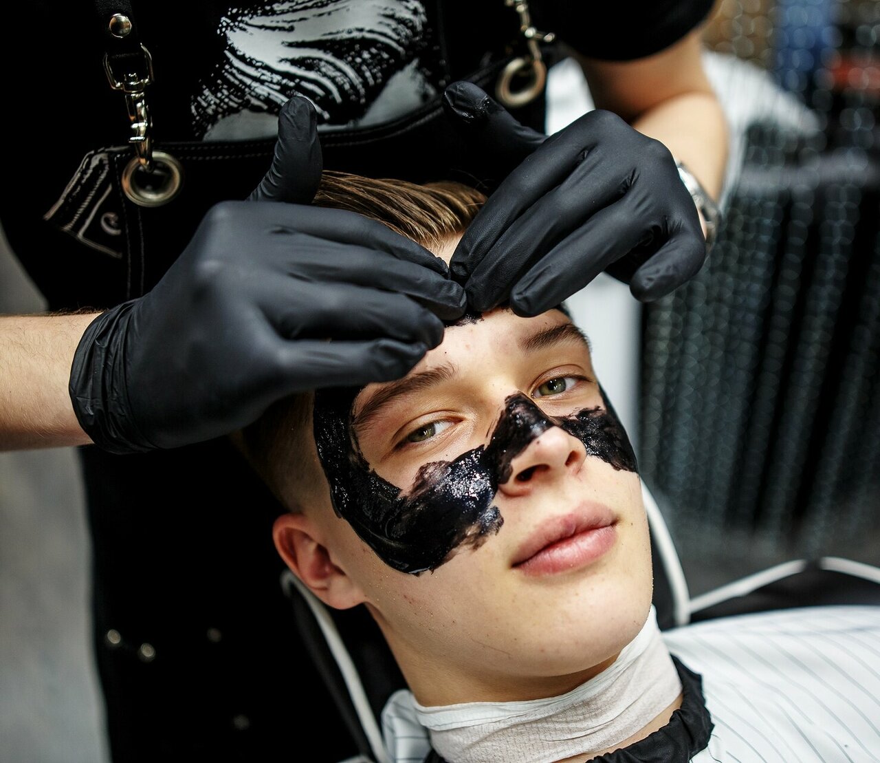 Услуга по очищению лица от черных точек, входят два распаривания лица горячим компрессом, скраб и черная маска. Здоровая и ухоженная кожа с барбершопом ТОПГАН Тюмень, Водопроводная.