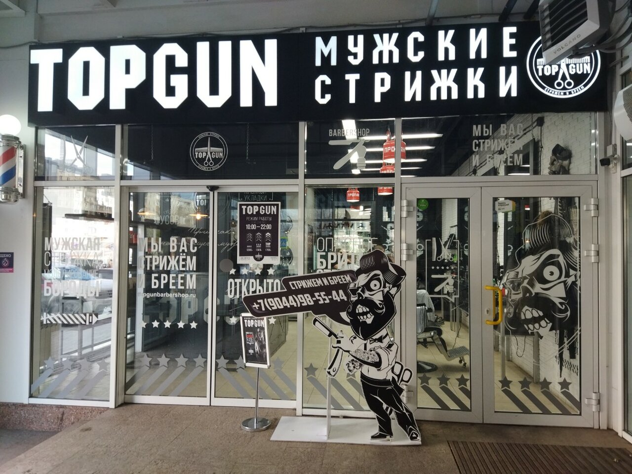 Барбершоп TopGun работает ежедневно с 10:00 до 22:00. Записаться на стрижку или другую процедуру можно по телефону +7 (904) 498-55-44.