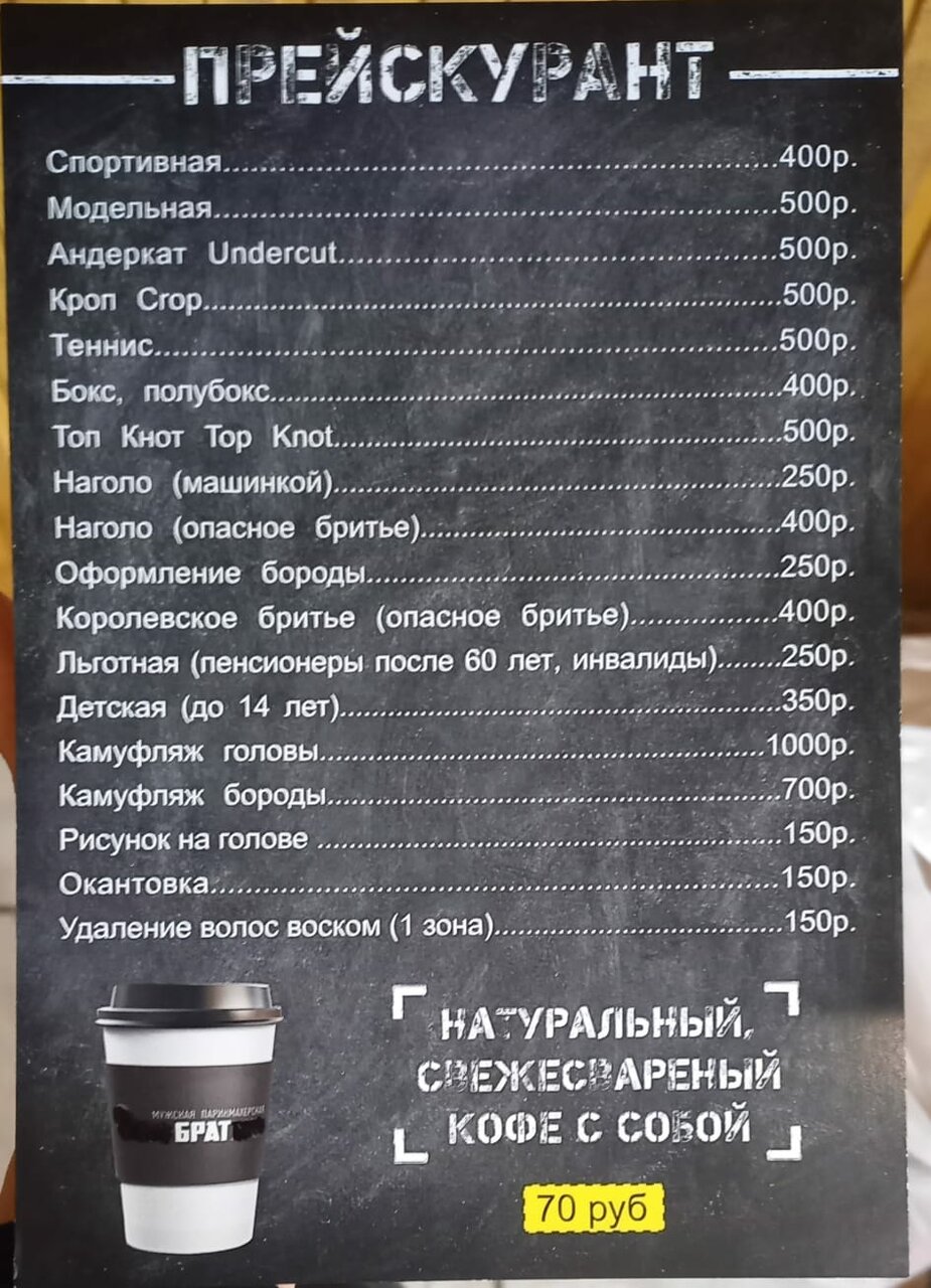 Информация о барбершоп Брат в Уфе актуализирована в ноябре 2025 года: