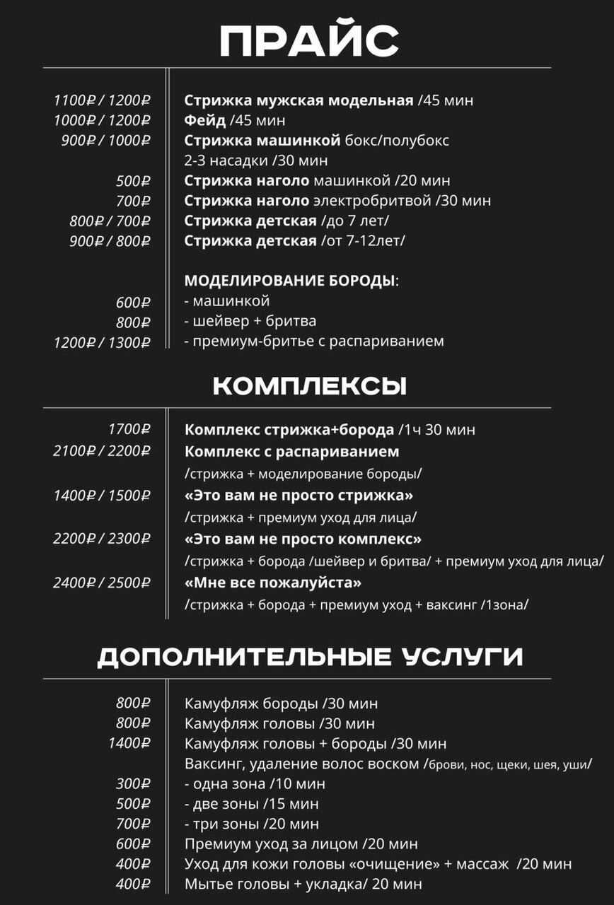 Скачать прайс-лист Мужская парикмахерская № 1 на ноябрь 2025 года