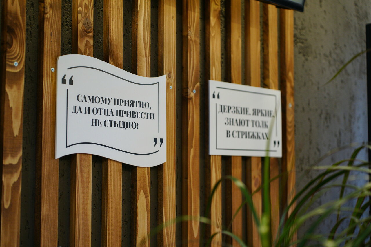 - Вежливый и приятный персонал; Чистое и просторное помещение; Индивидуальный подход к выбору прически; Качественная и аккуратная стрижка; Возможность записи через приложение