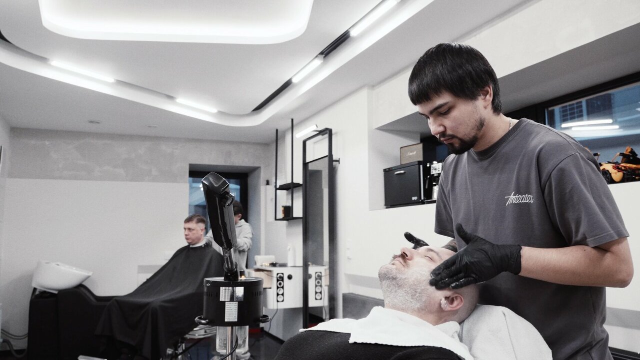 Мужской SPA-ритуал лица в 'Стригущий по Лезвию': 5 этапов обновления! Глубокое очищение, мягкий скраб, мощная черная детокс-маска (вытягивает токсины!), омоложение сывороткой и интенсивное увлажнение. Результат: чистая, сияющая, отдохнувшая кожа.