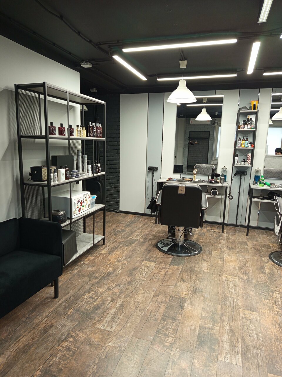 Барбершоп крутой! Мастера просто огонь! Из мужа и сына сделали красавчиков! Больше никаких салонов красоты, только этот барбершоп. Виски, кофе, какао, даже водку с огурчиком предлагают, что совсем неожиданно. Причем все бесплатно. Пока ждала преображения своих мужчин, залипла в Сони поиграть. Женских салонов таких нет, к сожалению.