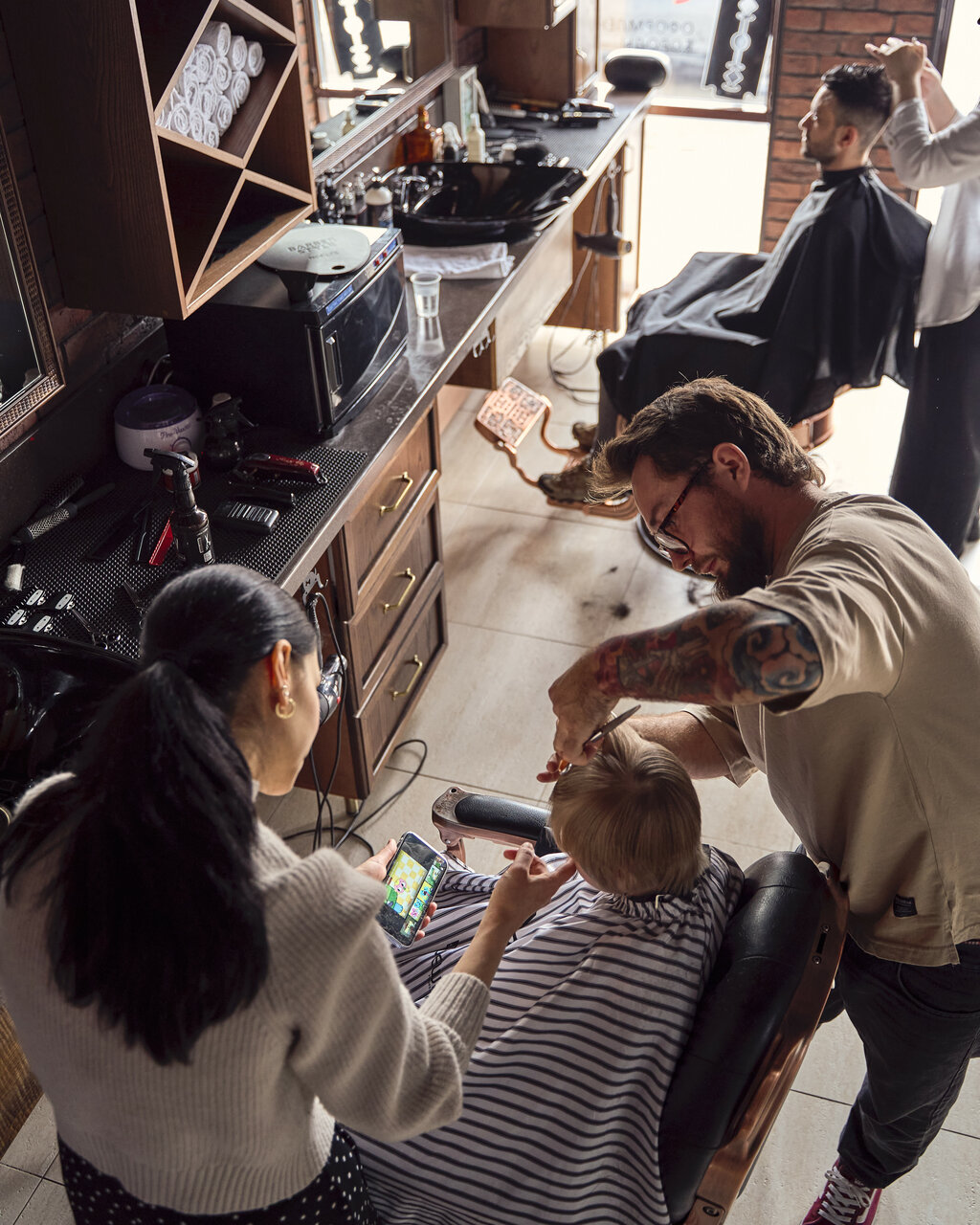 Услуга «Отец + сын» (до 8 лет) – совместный визит в барбершоп для стильного семейного образа!
