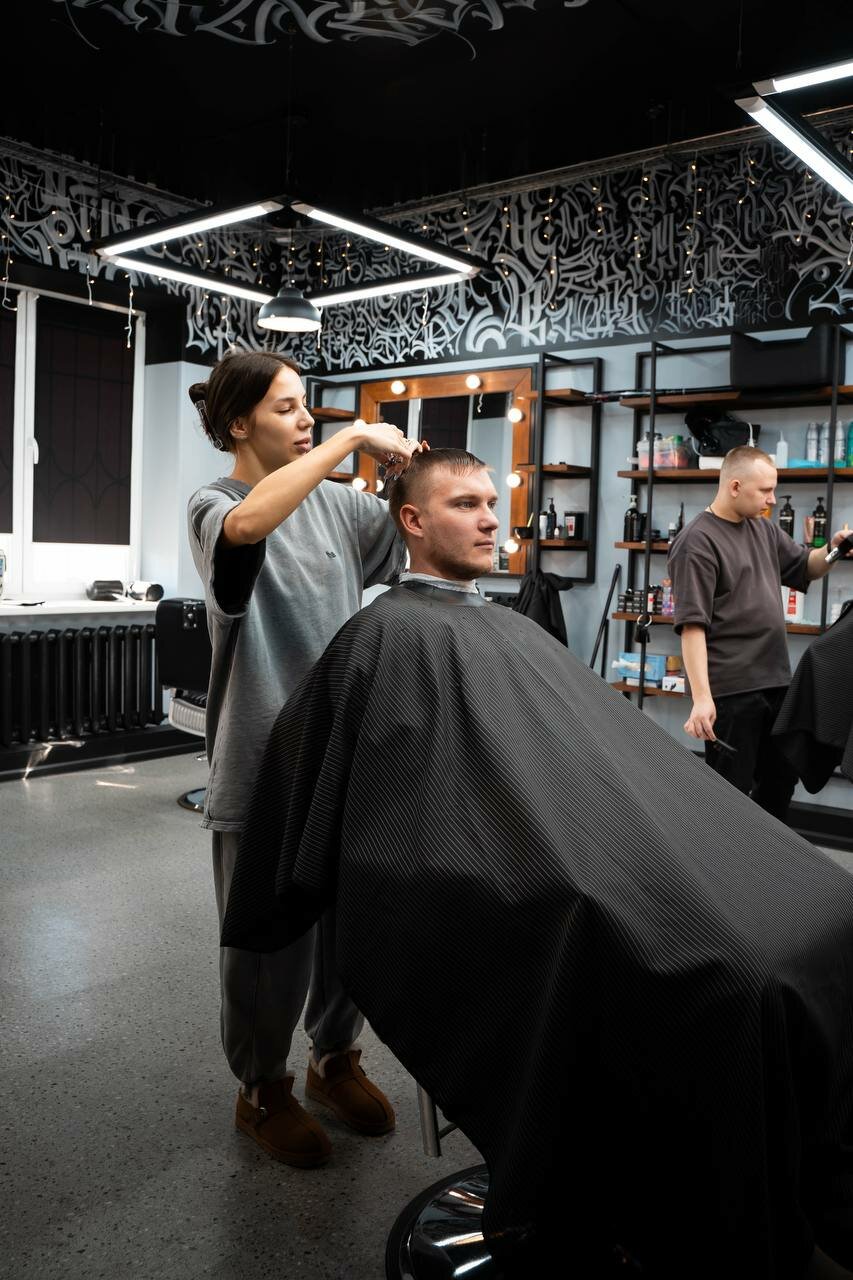 - Приятная музыка.; Высокий уровень мастерства персонала; Удобное расположение; Услуги по бороде и тонировке; Хорошее обслуживание и клиентоориентированность