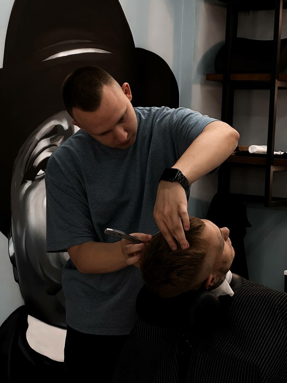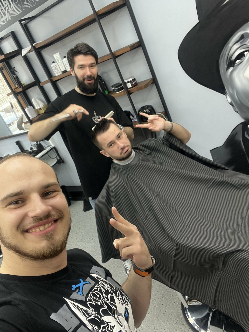 Барбер Дмитрий 10/10, постриг как и хотелось, во время стрижки общались на разные темы и т.д, приятная атмосфера и приятный персонал)