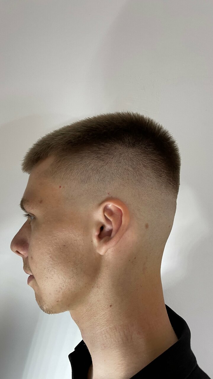 Стрижка машинкой с элементом фейдСтрижка машинкой с элементом фейд - это стильная и современная стрижка, которая отличается плавным переходом от коротких волос к более длинным и создает эффект затемнения.Как проводится стрижка:Барбер моет и рас