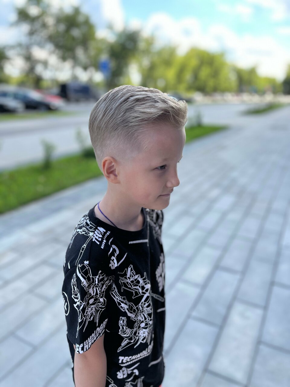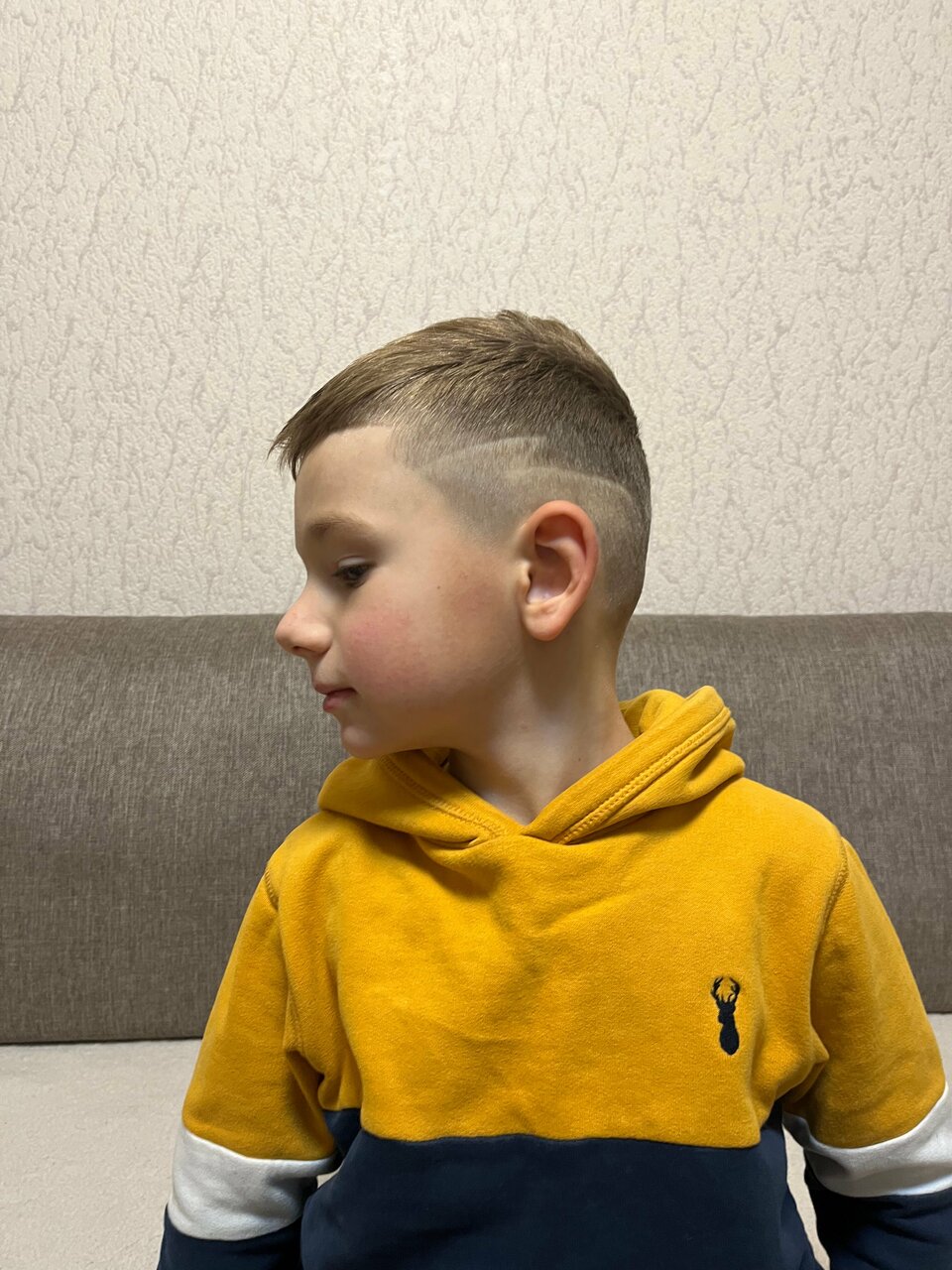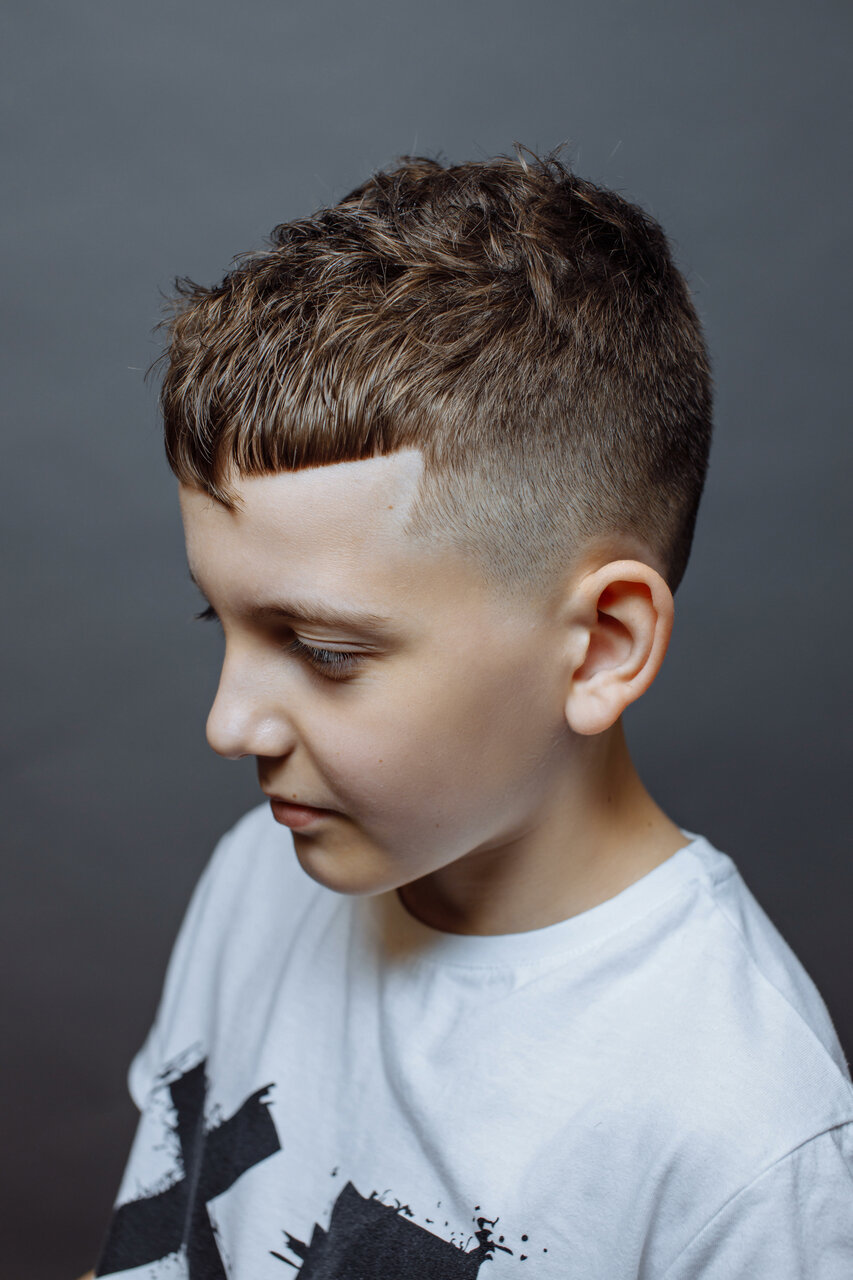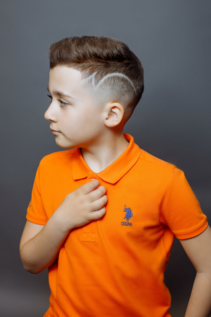 Дети от 6 лет. Включает по желанию выбривание несложных геометрических фигур (молния, полосы). Дети до 6 лет берутся на стрижку на усмотрение мастера.