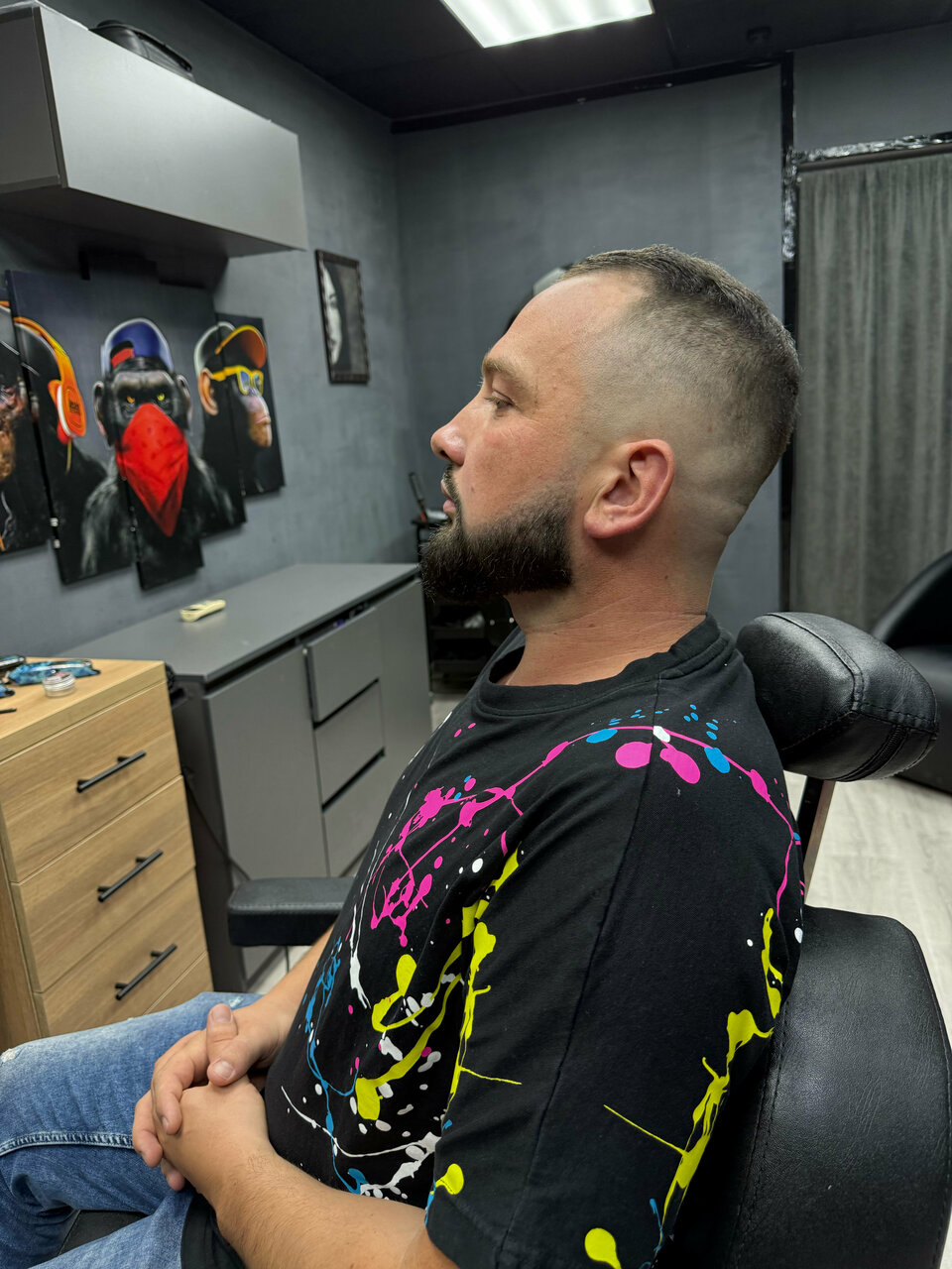 Все очень понравилось! Прекрасная атмосфера, дружелюбные мастера. Спасибо мастеру Ангелине, постригла именно так, как хотел муж