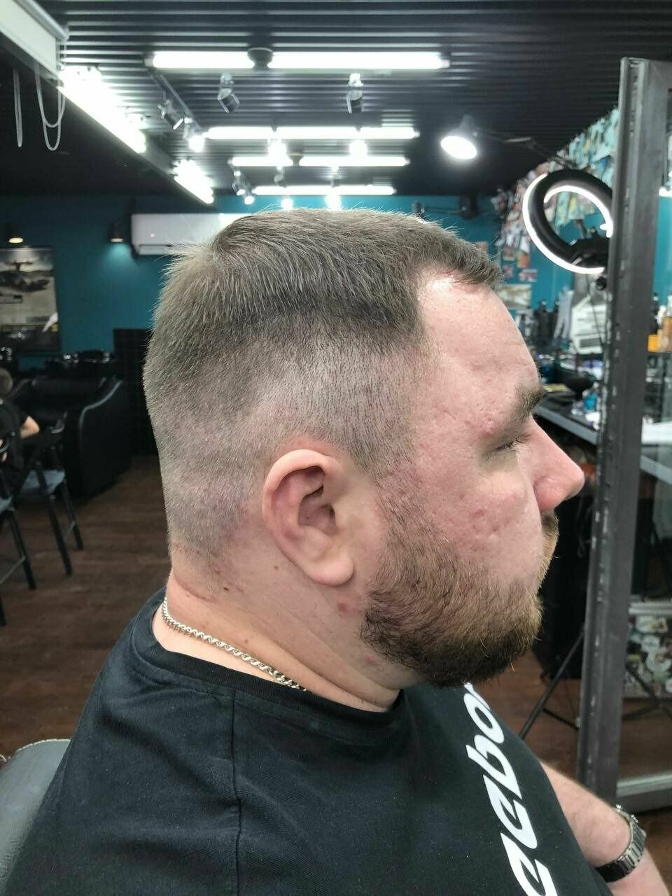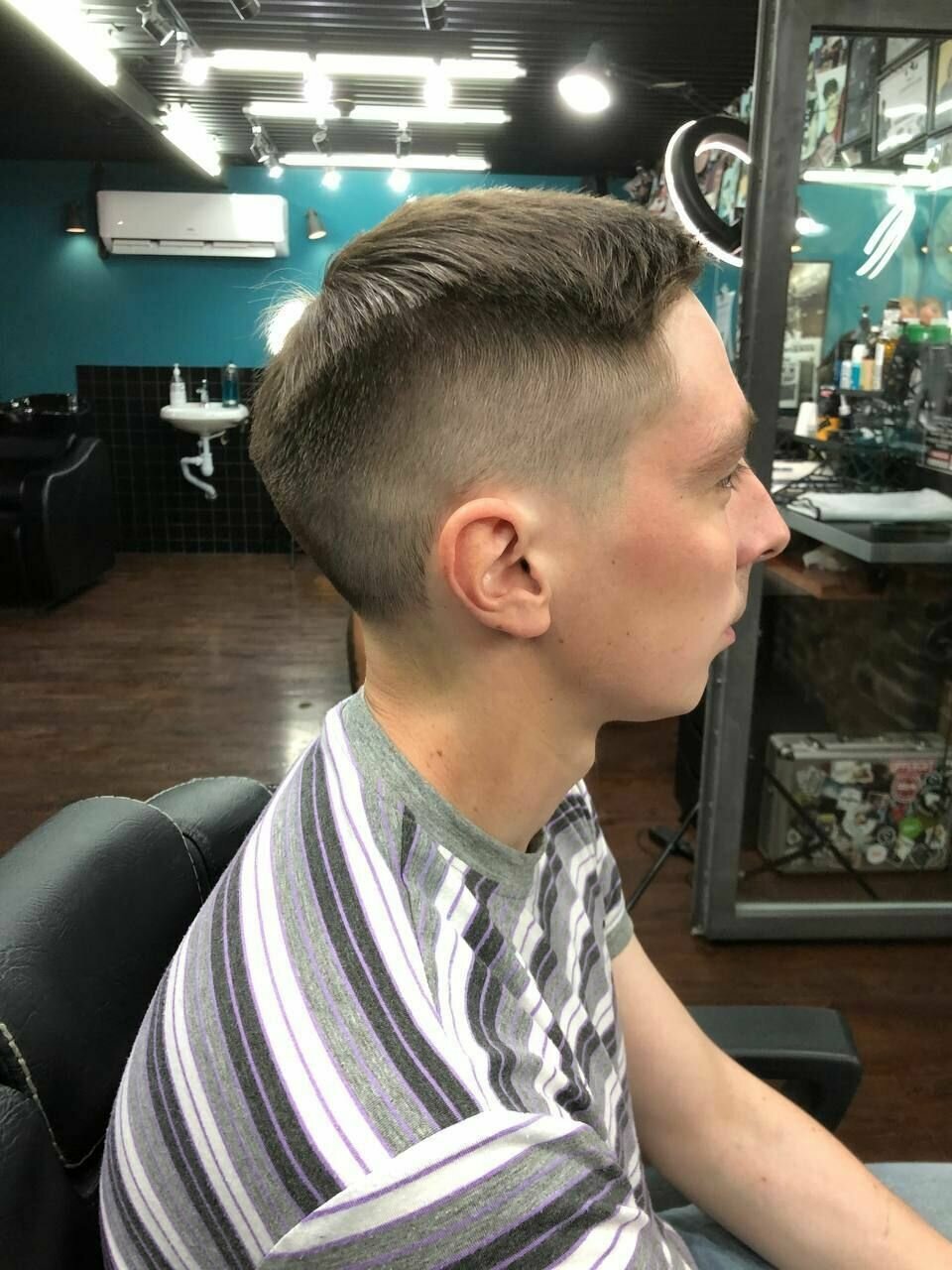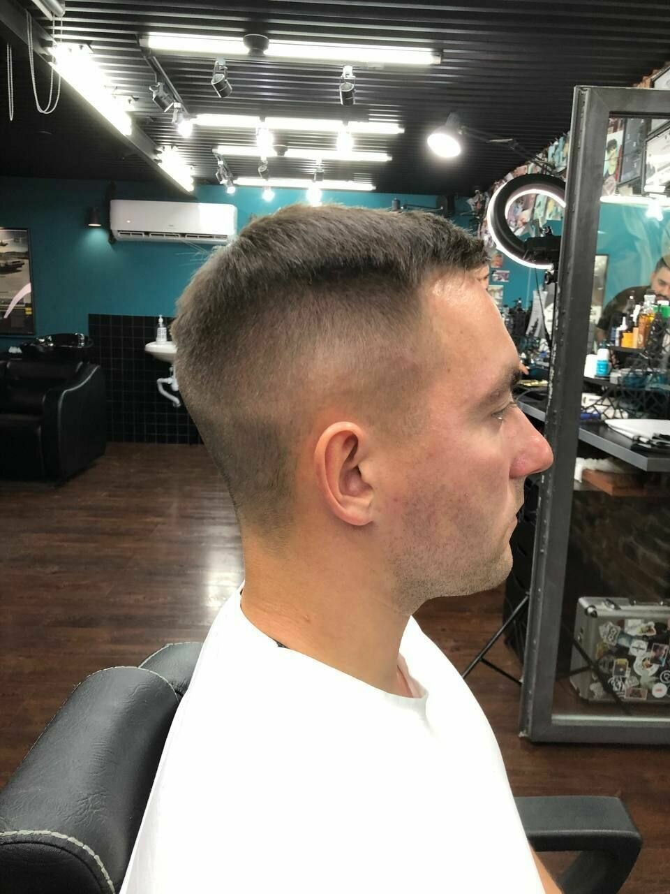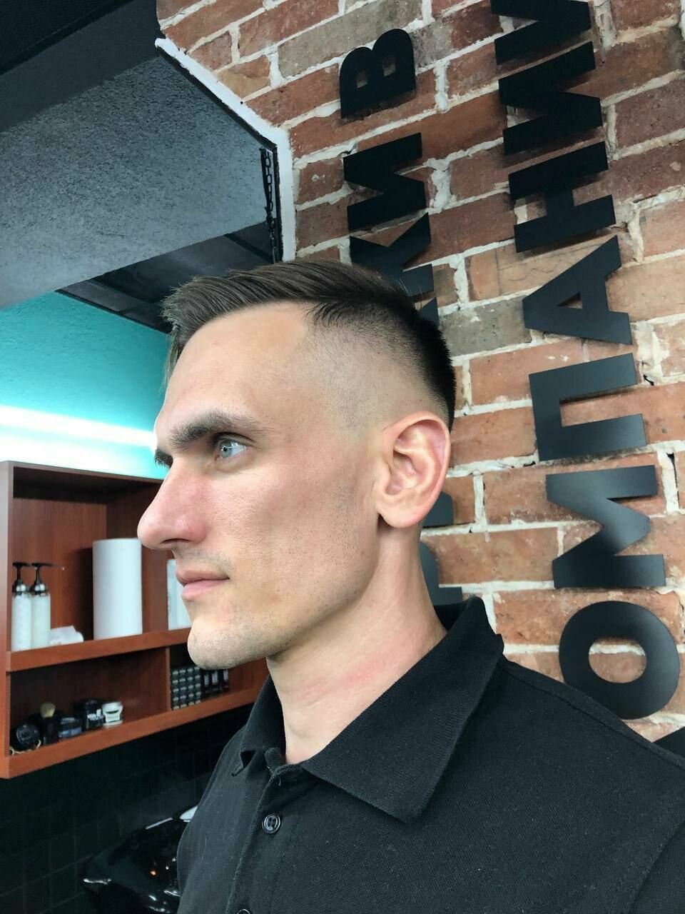 в первый раз подстригли коротко, убрали всю густоту, хотя просил оставить верх и только подровнять виски с затылком. Спустя два месяца волосы отросли, решил попробовать подстричься еще раз, долго обговаривали с мастером, что требуется сделать, в итоге оказалось так, что мастер не слушала вовсе. В этот раз я так же попросил оставить мне шапку сверху и немного убрать объем с боков и на затылке — как итог выбритые виски, затылок и 1,5-2 см длины сверху. Не рекомендую