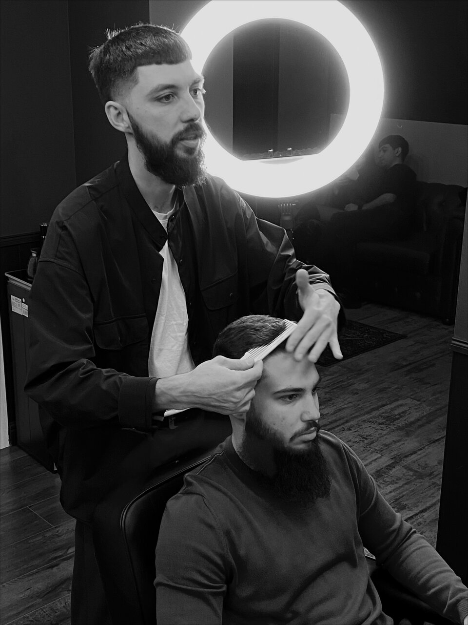 Прекрасные мастера, учтивые, мастеравитые, обязательно предложат чай или кофе. Голову помоют очень бережно. Стрижка по итогу нравится мне и моей семье, а это очень важно. Атмосфера слегка мрачноватая, но и не в кафе пришел, оборудование соаювременное, удобное. Главное есть, парковка, туалет и навигатор точно приведёт к крыльцу. Да, там есть ступени, которых не видно на фото, впервые приехав, искал вход в ровень с асфальтом, а он на крыльце. Не дешево, но и сервис на высоте . В общем рекомендую.