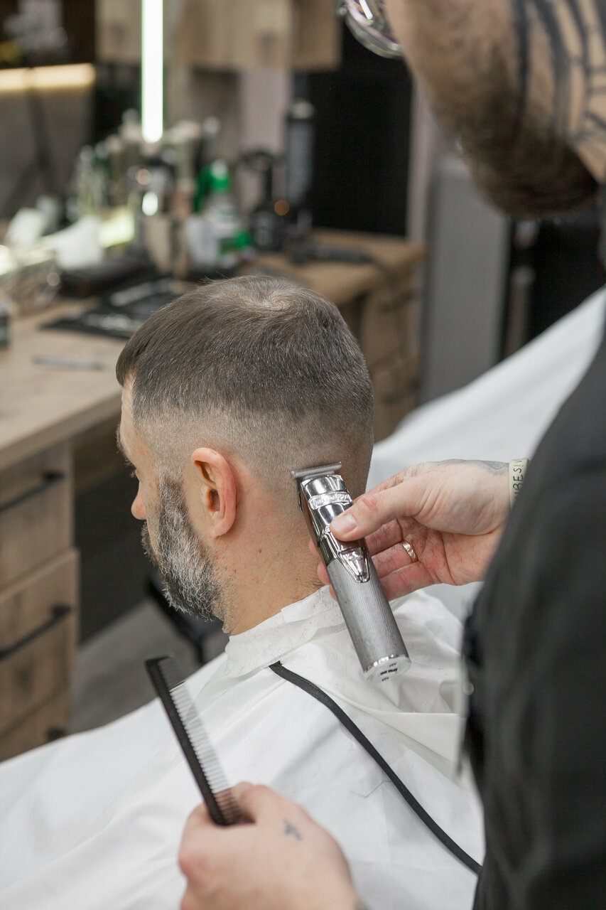 Услуга «Стрижка машинкой + борода машинкой» предоставляет возможность быстро и аккуратно придать форму волосам и бороде с помощью профессиональной машинки.