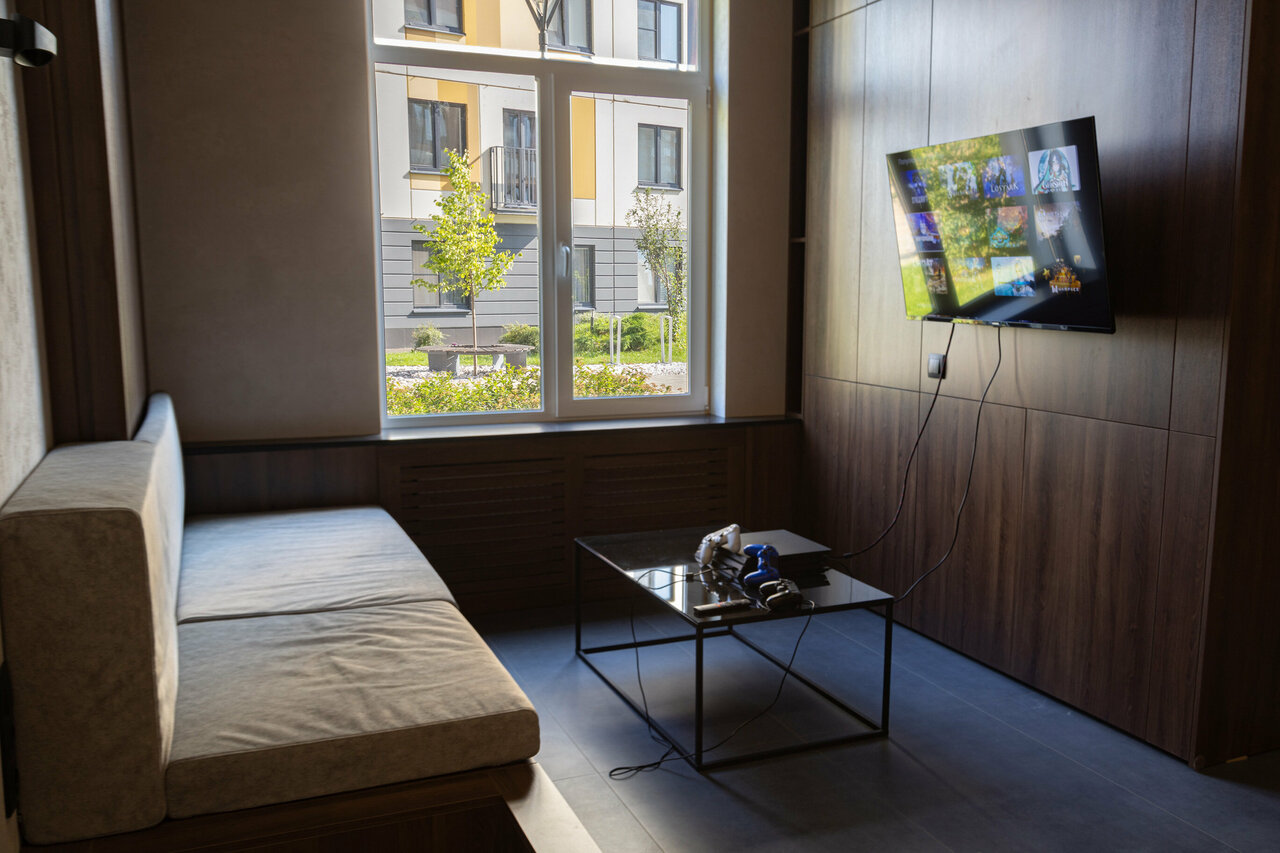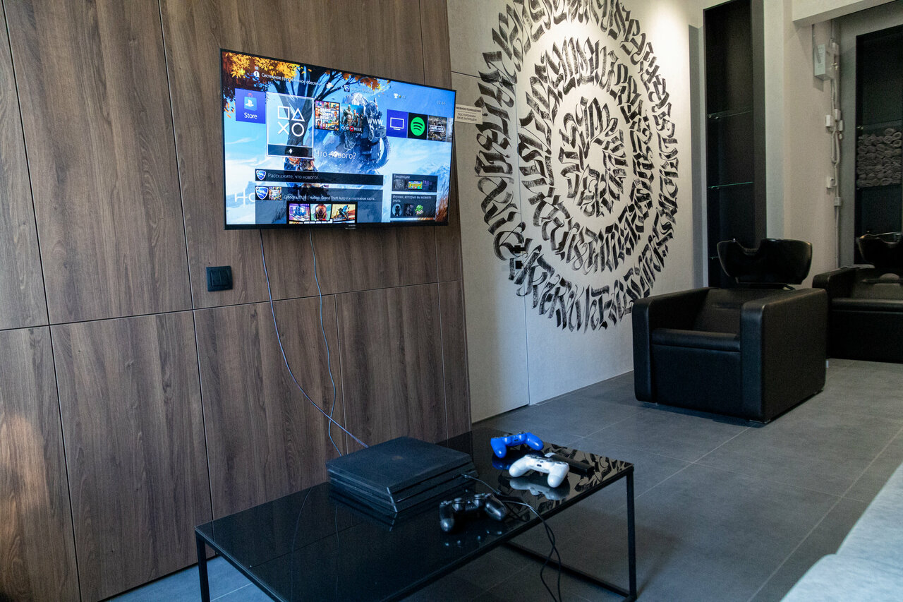 - Наличие игровой приставки и удобного диванчика (для детей)