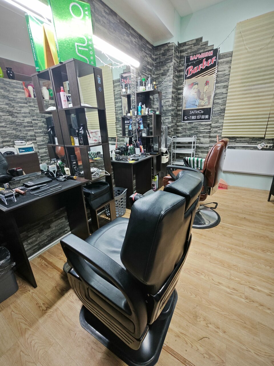 Салон расположен по адресу проспект Фрунзе, 77А и работает ежедневно с 09:30 до 19:30, что позволяет легко подобрать удобное время для визита. Для записи доступны два телефона: +7 (983) 137-00-96 для записи к барберу и +7 (915) 967-40-77 для записи к мастеру.