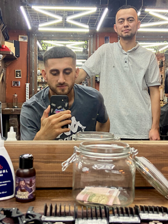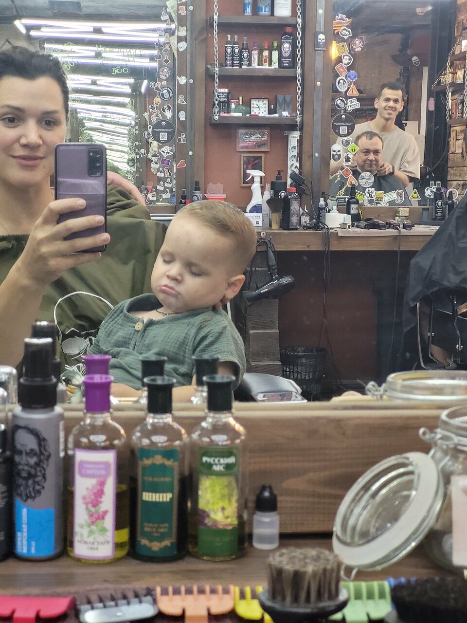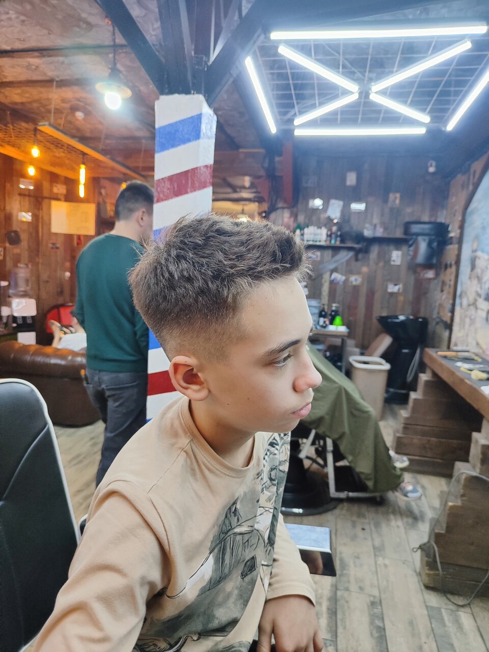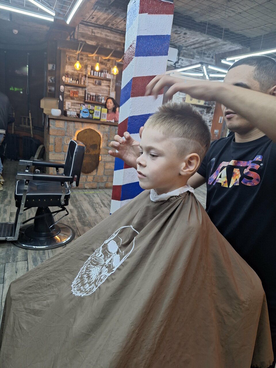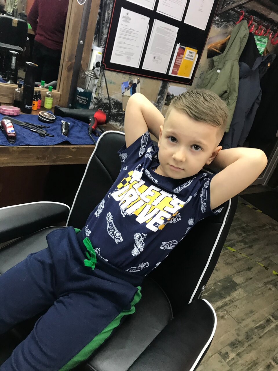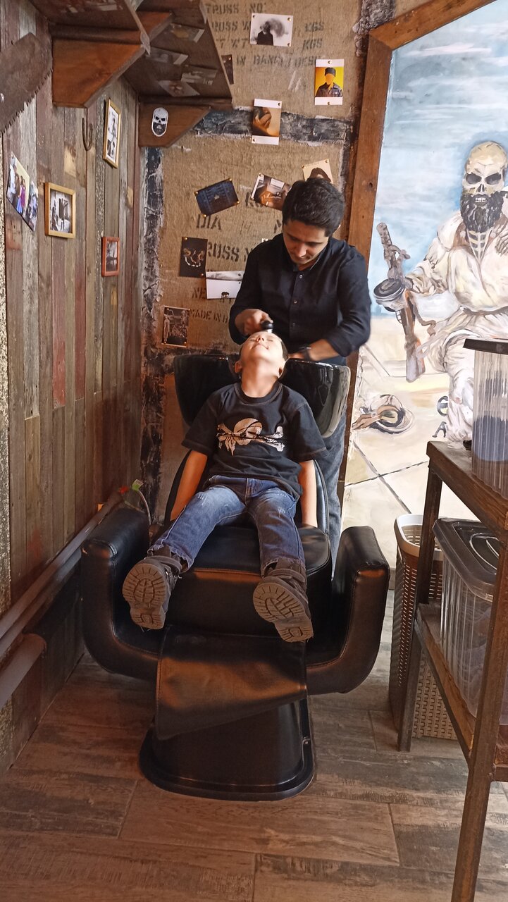 Стрежемся вместе с сыном у Наби. Рекомендую! Классный дизайн интерьера, а уголок ожидания не заставит вас скучать.