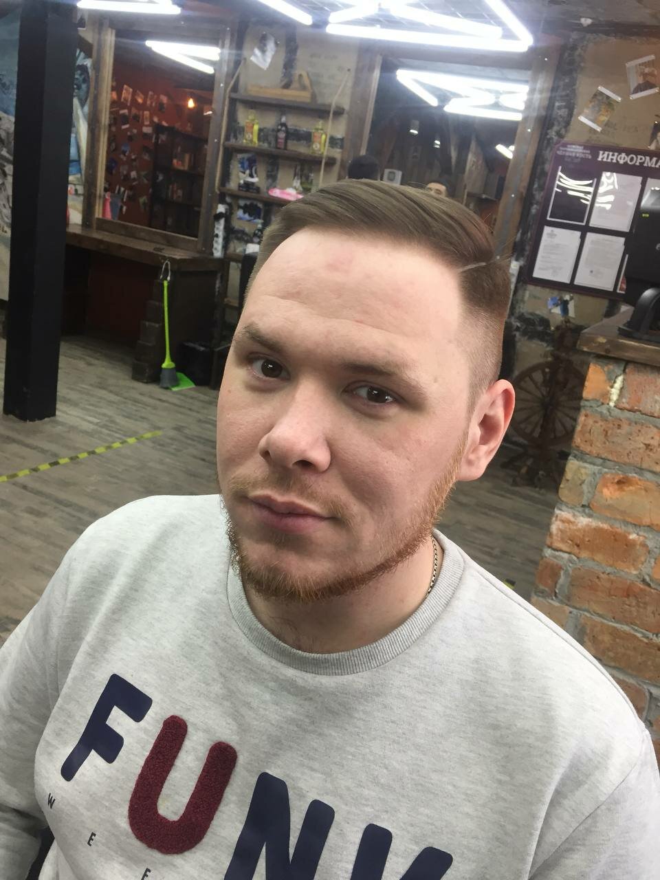 Олдбой эконом-класса. Хочешь постричься у топчика — запишись к Дмитрию и перейди дорогу. Прическа простая и без прикрас — сюда тебе дорога.