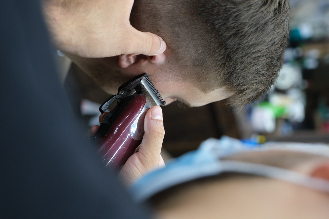 Мытьё головы шампунем личного бренда 'Чёрная Кость',стрижка машинкой под одну насадку