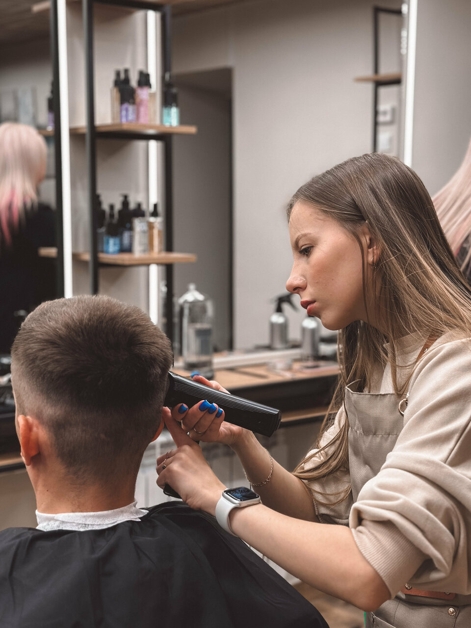 Очень хороший салон! Атмосфера-вау! Мастера супер! Подстригли мужа и ребенка , очень довольны! Подход к ребенку на лучшем уровне! Отдельное спасибо мастеру — руки от бога Администратор отлично встретил, чай-кофе предложила!