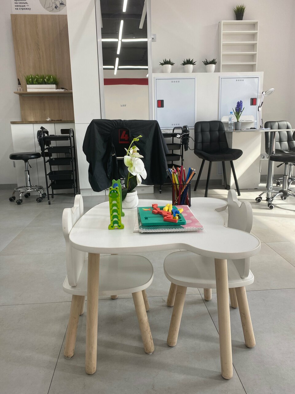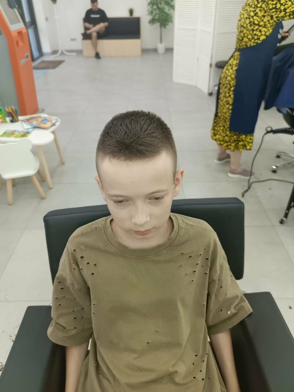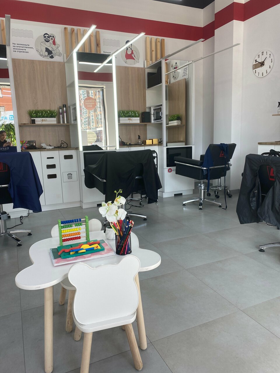 Очень грязно… волосы везде. На детском столе, на кресле ожидающих, такое ощущение что стригли роту солдат.