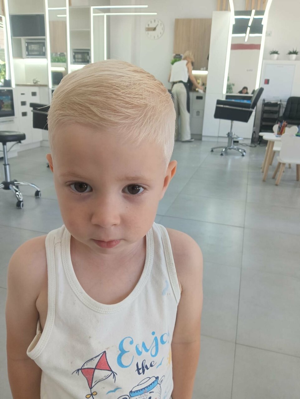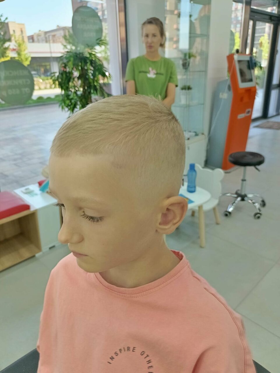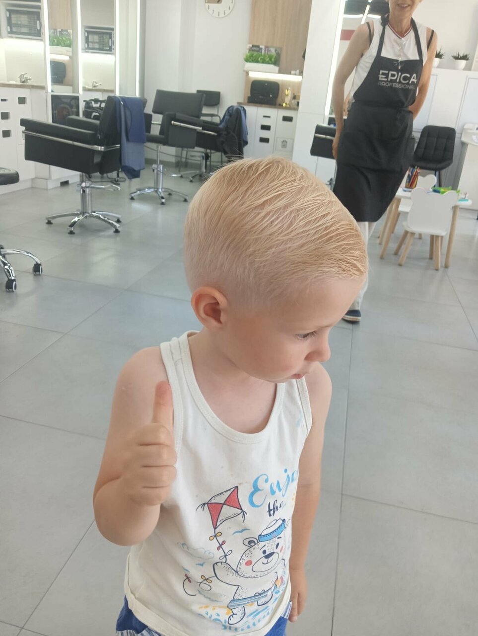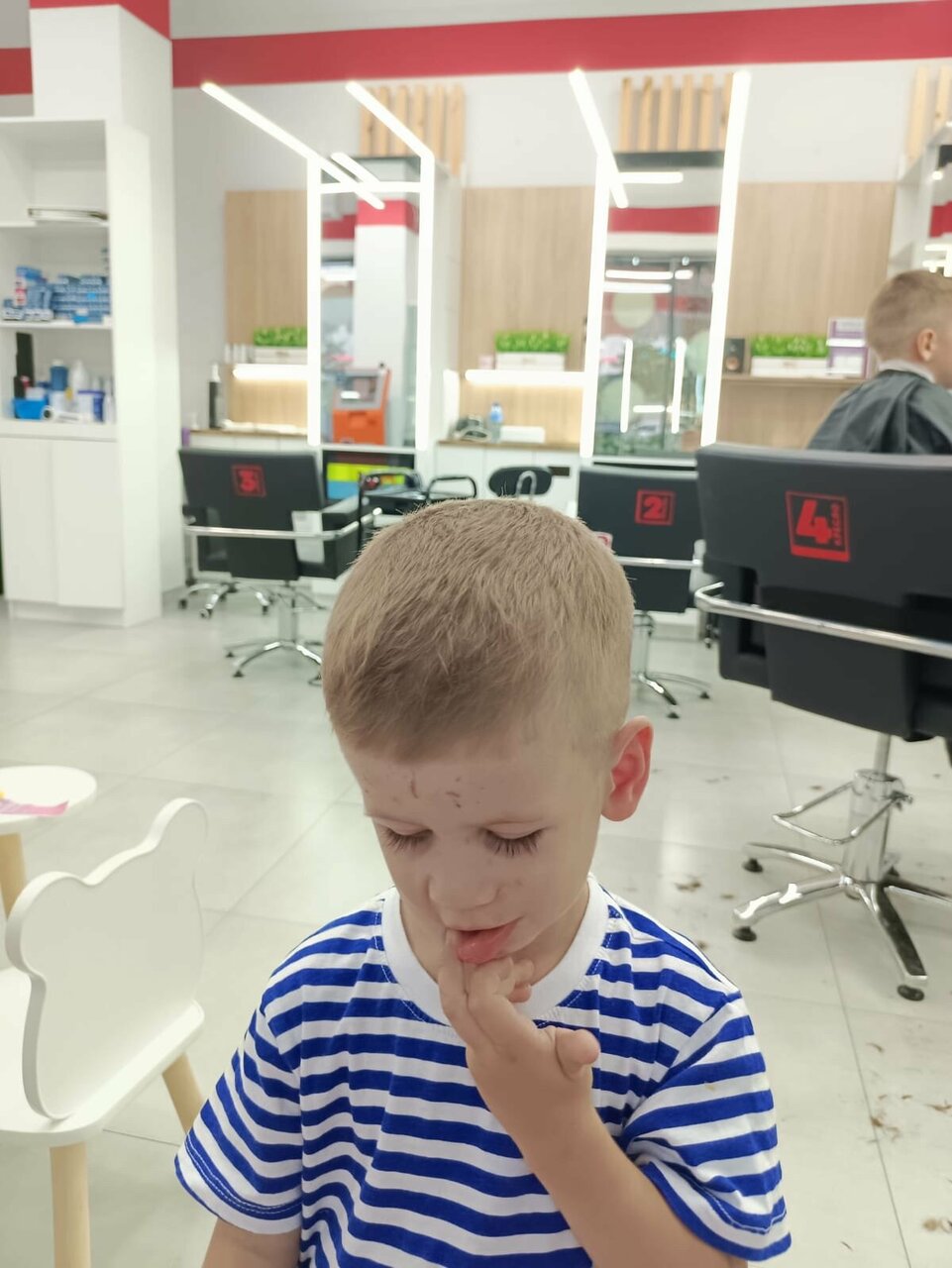 Хочу выразить благодарность мастеру Амине Сходили мы с ребенком на неудачную стрижку в другой парикмахерской. На голове у ребенка был просто ужас. Амина все исправила и стрижка стала идеальной Спасибо ей большое, просто лучший парикмахер
