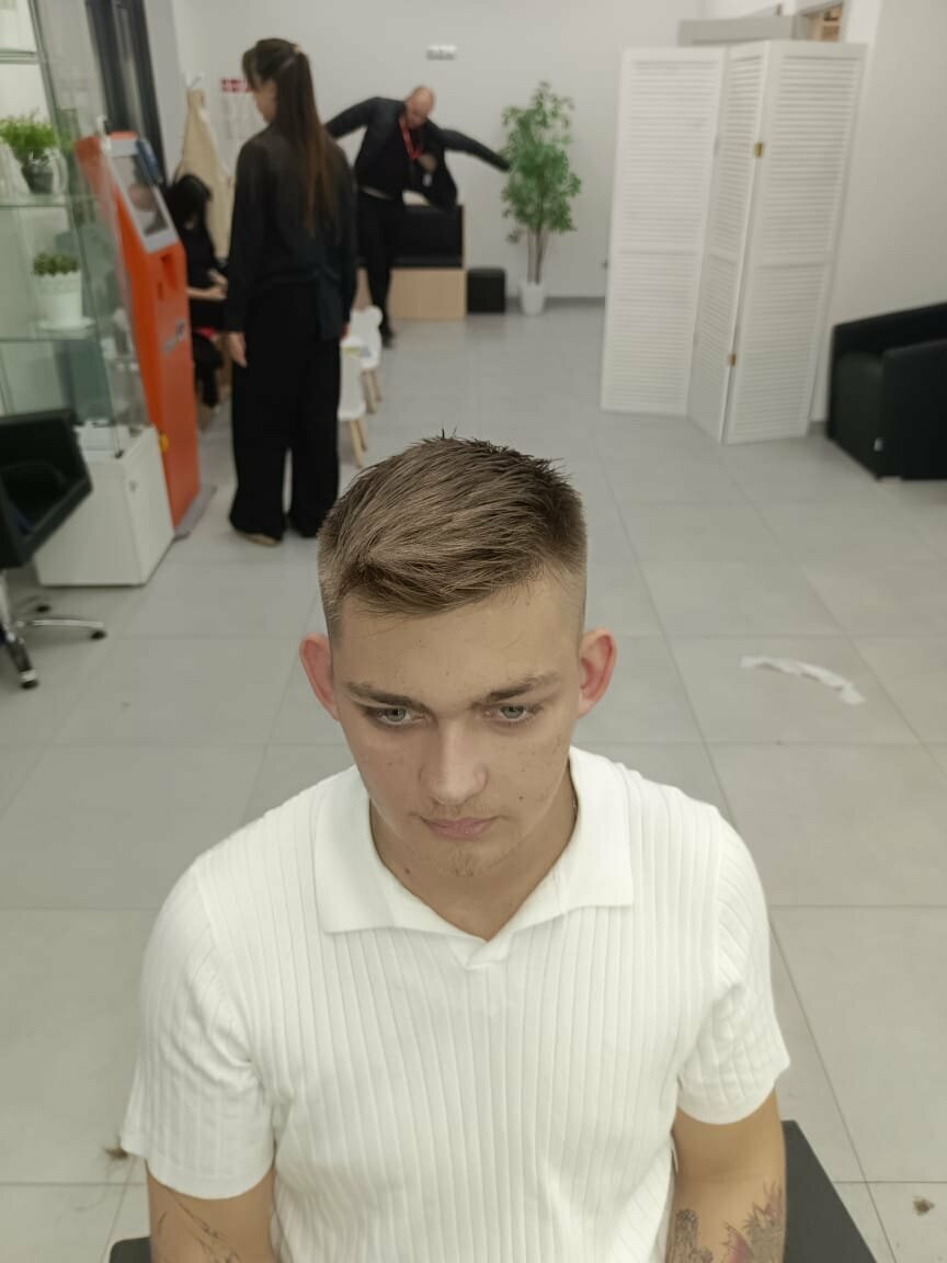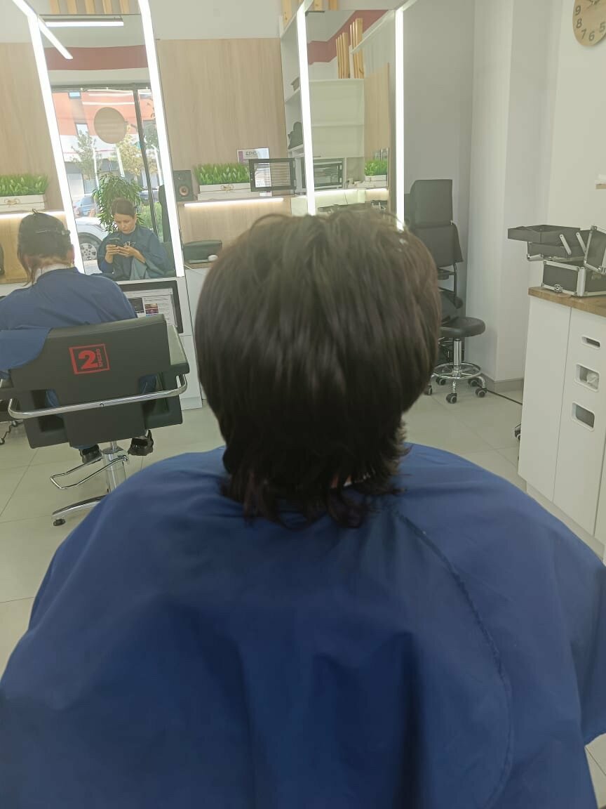 Ужасный мастер, вроде Марина Подстричься решил 09.08.25, немного насторожился когда сел в кресло, место того что бы задать вопрос «как будем стричься?» стала уже ножницами стричь, я сказал что немного с ушей убрать и немного с челки, по итогу подпивая что-то себе под нос стала меня стричь, вообще не как хотел В общем к мастеру большие вопросы, если можно так ее назвать Сама парикмахерская новая и чистая вопросов нет